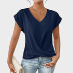 •  Favorecedor Escote En V Para Un Toque Elegante - El sutil escote en V realza el escote y crea un look elegante y con estilo. Perfecta para combinarla con joyas para un look sofisticado o sola para una elegancia sin esfuerzo.
