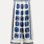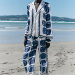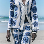 Nuestro conjunto de pantalón y camisa "Kendra" es la definición perfecta de tu estilo propio. Sus colores vibrantes y su estampado transmiten alegría y frescura.