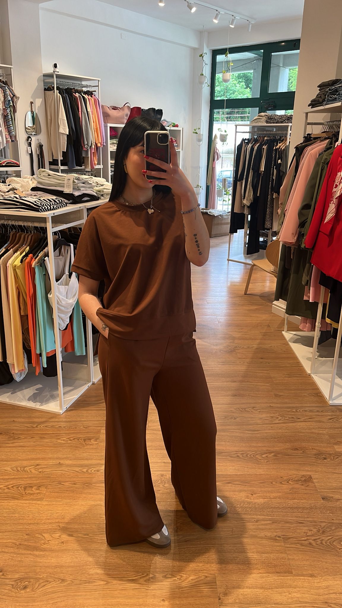 A veces solo quieres un atuendo que siempre te quede bien. El Conjunto Casual Franka es precisamente eso: ¡estiloso, moderno y atemporal! El conjunto tiene un corte relajado con un guiño deportivo. La parte superior y el pantalón lisos forman un look sin esfuerzo que es perfecto para una cita de café, un día en casa o un recado rápido. Hecho de una tela de jersey de alta calidad que cae suavemente y es muy cómoda de llevar. Un imprescindible que no puede faltar en tu armario, disponible en varios colores, para que siempre encuentres tu combinación perfecta.