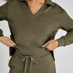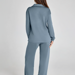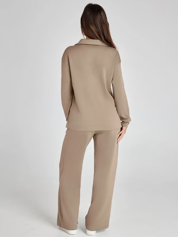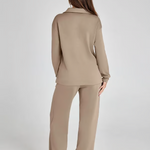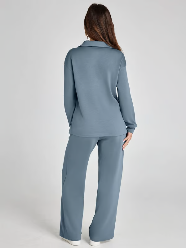 El conjunto Ivana es exactamente lo que necesitas para esos días en los que la comodidad y el estilo van de la mano. El conjunto consta de un suave suéter con un sutil cuello y un pantalón holgado con piernas anchas; juntos forman un look elegante y relajado que puedes llevar a cualquier parte. Ideal para un día en casa, una cita para almorzar o un paseo por la ciudad. La ligera y suave tela se siente maravillosa y permite que tu piel respire, lo que hace que este conjunto sea perfecto para la primavera. Disponible en varios colores, así siempre habrá un tono que se adapte a ti.