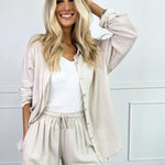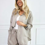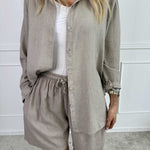 Con el Conjunto de Lino Marina, eliges sin esfuerzo estilo y comodidad durante todo el día. El conjunto consta de una elegante blusa y un short de tiro alto que favorece, hecho de una suave mezcla de lino que se siente maravillosamente ligera y transpirable. Ideal para días calurosos en los que quieres lucir bien sin sacrificar la comodidad. La apariencia casual-chic hace que este conjunto sea perfecto para cualquier ocasión: desde un almuerzo en la terraza hasta un día de compras o unas relajantes vacaciones de verano. Gracias a su amplia variedad de tallas, el Conjunto Marina se adapta maravillosamente a cualquier tipo de cuerpo y siempre te sentirás en tu mejor momento. Combínalo con sandalias, zapatillas o un elegante tacón y crea sin esfuerzo un look diferente cada vez!