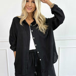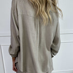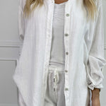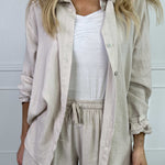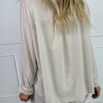 • Blusa holgada con una sutil textura – úsala abierta, cerrada o de manera desenfadada anudada