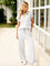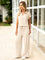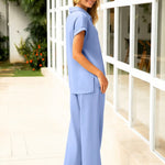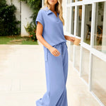 El conjunto de Olivia es exactamente lo que necesitas para los días en que la comodidad y el estilo van de la mano. El conjunto consiste en un suave suéter con un sutil cuello, mangas cortas y un pantalón holgado con piernas anchas, que juntos forman un look elegante y relajado que puedes llevar a cualquier lugar. Ideal para un día en casa, una cita de almuerzo o un paseo por la ciudad. La ligera y suave tela se siente maravillosa y permite que tu piel respire, lo que hace que este conjunto sea perfecto para la primavera. Disponible en varios colores, para que siempre haya un tono que se adapte a ti.