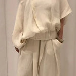 La elegancia atemporal y la comodidad sin esfuerzo se combinan en el Conjunto de Lino Rianna. Este conjunto es perfecto para quienes aman un look relajado pero estiloso sin sacrificar calidad. La ligera tela de lino se siente maravillosamente suave y ligera sobre la piel, mientras que el diseño refinado aporta un toque elegante. La blusa asimétrica combinada con los pantalones holgados brinda un toque juguetón pero chic. Ya sea que planees un día de relajación o quieras lucir estilosa durante una cena junto al mar, este conjunto siempre es una elección perfecta.