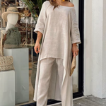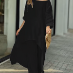 La elegancia atemporal y la comodidad sin esfuerzo se combinan en el Conjunto de Lino Sophie. Este conjunto es perfecto para quienes aman un look relajado pero elegante sin sacrificar la calidad. La ligera tela de lino se siente maravillosamente suave y ligera sobre la piel, mientras que el diseño refinado aporta una apariencia elegante. La blusa larga combinada con los pantalones sueltos da un toque juguetón, pero aún así chic. Ya sea que estés planeando un día de relax o quieras lucir elegante durante una cena junto al mar, este conjunto siempre es una elección perfecta.