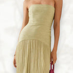 Su precioso color verde pistacho, transmite paz y elegancia, su diseño con corsé lo hace ajustarse a la perfección a cualquier figura y su falda plisada aporta movimiento a tu look. Además, gracias a su corte holgado y a las propiedades de su tejido, aporta comodidad y libertad de movimientos para que te luzcas como nunca. Prepárate para vestirlo e hipnotizar a todos allá donde vayas.