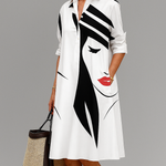 El vestido Clara™ encarna una elegancia audaz con una gracia sin esfuerzo. Diseñado para captar la atención con una confianza refinada, fusiona a la perfección la sastrería atemporal con un llamativo toque artístico. Perfecto para inauguraciones de galerías, cenas especiales o almuerzos con estilo, Clara™ deja una impresión inolvidable sin decir una palabra. Con un moderno estampado ilustrado y una silueta fluida en línea A, este vestido tipo camisa es donde el arte se encuentra con la moda. El cuello elegante y la paleta monocromática irradian sofisticación, mientras que el diseño único de rostro añade el toque justo de audacia. Ideal para mujeres que irradian confianza a través del minimalismo con un giro.