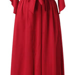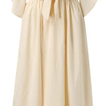 El escote en V y el lazo en la cintura crean una silueta favorecedora que resalta el encanto femenino, mientras que las mangas acampanadas añaden elegancia. La alta abertura añade un elemento moderno y estiloso.