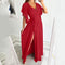 Vestido maxi elegante con escote en V y mangas acampanadas, además de una alta abertura