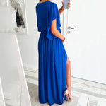 • Alta abertura frontal - el largo vestido maxi tiene una alta abertura frontal, añadiendo un elemento estiloso y potencialmente ventilado.