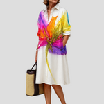 El Vestido Doris es pura luz del sol en forma de tela. Con un diseño floral pintado a mano que florece sobre un lienzo blanco nítido, Doris captura la esencia de los días de verano despreocupados y de la elegancia simple. Ya sea que estés de vacaciones, yendo a un brunch o disfrutando de un paseo por el jardín, este vestido aporta alegría y ligereza a cada paso. Su silueta relajada de camisa ofrece un ajuste transpirable sin sacrificar el estilo, mientras que el toque de colores vibrantes añade un lado juguetón y artístico. Con Doris, no solo llevas un vestido: llevas un estado de ánimo: vibrante, libre y maravillosamente tú misma.