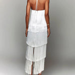Los detalles de sus borlas crean un efecto de cascada que captura la atención y añaden un toque de glamour y movimiento a tu look. Con su longitud larga y fluida, el vestido Edén es perfecto para eventos formales y ocasiones especiales. Su corte se ajusta perfectamente a tu figura, creando una apariencia elegante y sofisticada.