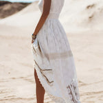 Vestido largo de encaje creado para días pasados descalzos y escapadas soleadas. Ligero, lleno de gracia y perfecto para perseguir olas y realizar sueños de vida junto al océano.