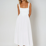 El vestido Helena es un diseño atemporal con un toque moderno. El escote cuadrado y el corte fluido crean un modelo versátil y favorecedor que combina elegancia y libertad, ideal tanto para el día a día como para ocasiones especiales.