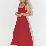 El vestido largo con escote cuadrado y corte fluido realza la silueta de manera hermosa. Ideal tanto para el día a día como para ocasiones especiales, está hecho de un material suave y transpirable que garantiza comodidad y estilo durante todo el día.