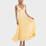 Noa | Vestido Largo Amarillo Plisado Con Cuello En V