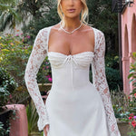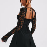 Hecho de algodón y poliéster y gracias al diseño de sus mangas de encaje, el pecho con detalle de corbata y su espalda al aire, este vestido es una prenda única y especial. Su corte se adapta perfectamente a tu figura y resalta tus curvas, haciéndote sentir guapa y segura de ti misma cada vez que lo uses.