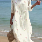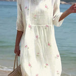 El ajuste amplio y el tejido ligero garantizan una sensación de frescura continua, incluso en los días más calurosos. Un vestido que no pica, no aprieta, sino que abraza con dulzura.