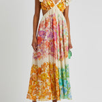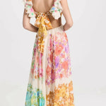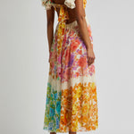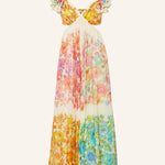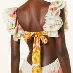 Este precioso vestido presenta un diseño floral que representa la esencia del verano . Con un escote en V profundo y volantes en los tirantes , este vestido transmite feminidad y elegancia. Su cintura ajustada y el corte fluido de la falda permiten un movimiento libre y cómodo, perfecto para cualquier ocasión.