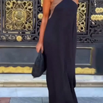 Este impresionante vestido maxi con escote en V ofrece una elegancia relajada. Su silueta fluida y corte cómodo lo hacen perfecto para ocasiones cálidas, desde salidas informales hasta noches elegantes.