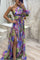 • Gasa fluida con un estampado floral vibrante en tonos de rosa, morado, verde y azul.