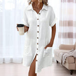 Sumérgete en la comodidad veraniega con este elegante vestido camisero diseñado para mujeres que valoran tanto la comodidad como el encanto sutil. Suave en forma, material transpirable y corte relajado lo convierten en la elección perfecta para brunch soleados o paseos en una tarde de verano.