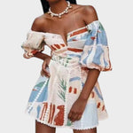 El vestido Sabella destaca por su atrevida estética boho-chic. El corte estructurado, con escote en V y laterales abiertos, realza la silueta de forma sensual y elegante a la vez. Los detalles de ganchillo blanco añaden un toque artesanal, mientras que el estampado floral le confiere un moderno aire vintage. Ideal para días de verano, escapadas románticas o festivales.