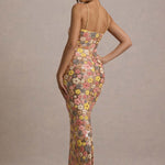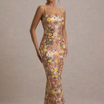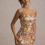 Selviana combina delicadas lentejuelas florales en tonos pastel con una silueta elegante que realza tu figura en cada movimiento. Desde los tirantes ajustables hasta la abertura lateral sutil, cada detalle está pensado para ofrecerte un look femenino, sofisticado y absolutamente inolvidable.