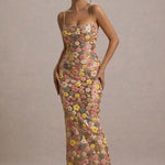 SELVIANA Vestido Maxí con Flores y Lentejuelas