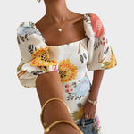 El vestido Teressa está confeccionado en tela de algodón, con escote cuadrado, hombros descubiertos y mangas abullonadas, lo que le da un toque retro y divertido, a la vez que modifica ligeramente la línea de los hombros. El dobladillo es una falda con volantes de varias capas, que realza la superposición y la sensación tridimensional, haciéndola más estilizada y elegante al caminar. Ideal para citas informales y otras ocasiones cotidianas.