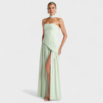 El vestido perfecto para robar miradas y conquistar con cada paso. Su escote palabra de honor y la abertura lateral combinan sensualidad con sofisticación, ideal para eventos donde tú eres la protagonista.