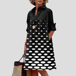 El Vestido Yvonne es donde el clásico negro se encuentra con el arte contemporáneo. Diseñado para causar una impresión que sea tanto audaz como refinada, esta pieza presenta un motivo de puntos en cascada que se difumina delicadamente para un toque dinámico y moderno. Ya sea que vayas a un brunch elegante, a una soirée nocturna o a la inauguración de una galería, Yvonne asegura que estés vestida con presencia y gracia. Su estructura de vestido camisa aporta un encanto atemporal, mientras que el flujo visual de la impresión alarga y realza. Brillante pero expresivo, Yvonne es para la mujer que conoce el poder del contraste—elegante, segura de sí misma y completamente suya.