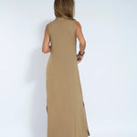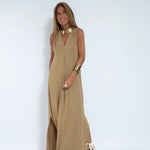 Su tejido de algodón y poliéster, suave al tacto y cómodo, se adapta suavemente al cuerpo, aportando una sensación de confort incomparable y garantizando un cuidado sencillo. Su diseño simple pero clásico; largo hasta la rodilla, lo hace adecuado para el uso diario, sobre todo en esas ocasiones en las que quieres ir a la moda pero sin perder la comodidad. Lo mejor de este conjunto es su versatilidad, ya que el vestido de tirantes es sexy y elegante, mientras que el chaleco es perfecto para días más fríos.