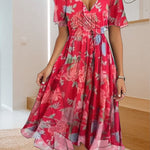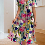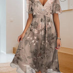 Un escote en forma de V sofisticado y una silueta maxi fluida proporcionan un aspecto atemporal y elegante, que se puede adaptar tanto a reuniones formales como a eventos informales, como fiestas en el jardín o salidas a la playa. Vestido casual con estampado sencillo y escote en V.