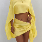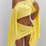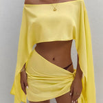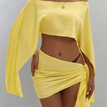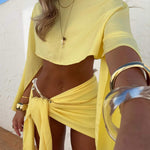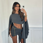 Su top corto de manga larga con diseño asimétrico y hombros descubiertos, ofrece un estilo relajado y elegante. Nuestro pareo otorga un diseño cruzado y drapeado, que resalta tu figura aportando un toque sensual y sofisticado. Ademas, gracias a su tela suave, ligera y fluida de algodón y poliéster quedará como nuevo después de cada lavado.