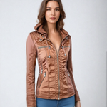 Chaqueta de cuero con capucha