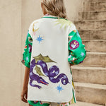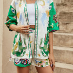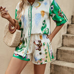 Disfruta de esta temporada con nuestro precioso conjunto de pantalón corto y camisa. Sus colores transmiten energía y vivacidad, mientras que su estampado único le da ese toque de originalidad.