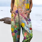 Freja | Mono de Jardín de Flores Silvestres captura la belleza indómita de un prado de verano. Con su apariencia pintada a mano y una explosión de colores – desde suaves tonos pastel hasta vibrantes flores – esta pieza trae la alegría de la naturaleza directamente a tu guardarropa. Es para la mujer que sigue su propio camino, siempre en plena floración.
