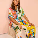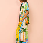 Nuestro conjunto de pantalón largo y camisa "Kalea" es la definición perfecta de la originalidad. Sus colores vibrantes y su estampado transmiten alegría y frescura.