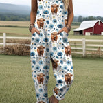 Maja | Highland Bloom-Salopette fue creada para días tranquilos, praderas verdes y corazones juguetones. Con encantadores terneros de las Tierras Altas, que están incrustados entre suaves patrones de flores azules, este diseño peculiar aporta alegría y comodidad a su guardarropa. Perfecta para mañanas de mercado, café en la veranda o un día en el jardín.