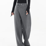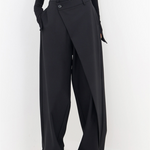 Regálate comodidad y estilo con nuestro pantalón ancho asimétrico.