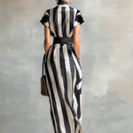 Vestido Maxi de Chiffon con Cuello Alto y Mangas Cortas para Mujer