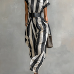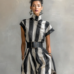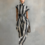 Un refinado vestido maxi de chiffon con un cuello alto y una silueta fluida, perfecto para mostrar una elegante feminidad en climas cálidos.